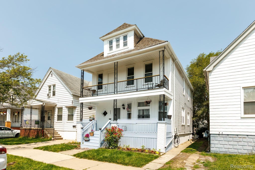 A classic, well-maintained and well-loved Hamtramck duplex located on a pleasant residential street in the heart of the city, this recently updated home is located less than a ten-minute drive from Downtown Detroit and is walking distance to numerous shops, restaurants, museums, bars/breweries, cultural institutions, and Keyworth Stadium (home of DCFC). This home has been partially occupied by the seller for nearly a decade and could be perfect for a live/rent owner or serve as a 2 or 3-unit rental. Original hardwood floors were recently restored throughout the living space and alluring views of St. Florian's cathedral abound from the living room and double-decker porch. The dining and living rooms enjoy gentle morning sunlight, while the bedrooms receive the bulk of the afternoon sun. Enjoy a recently renovated bathroom with subway tile and luxurious rain shower in the second-floor unit. A refreshed covered back patio looks onto a tree-canopy-covered back yard, providing a shade oasis in the warm Michigan summers. The house is one of the few in Hamtramck with a level-2 electric vehicle charger installed for convenient EV charging in the one-car driveway. City rental certificate for the first-floor unit is on file through 5/26, but the current tenant is a friend of the seller and will be moving out. The home also contains a finished third-floor attic unit with a full bath and kitchenette, which could be brought up to municipal code and rented as a third unit. Seller used the third floor as a third bedroom/mother-in-law suite for the second-floor unit. Shared front-load Whirlpool washer and dryer were installed by the current owner in the partial basement. Tear-off roof replacement completed in 2017. New front porch was re-built in 2020. NOTE: third-floor unit is not currently licensed for rental with the City and would require upgrades to receive rental certificate. BATVAI