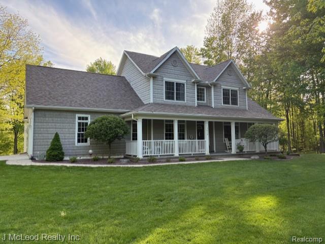 Welcome to your dream home! This beautiful, well-built 3,293 sq ft two-story home is privately situated on 5.5 wooded acres in the Willow Creek Association—just minutes from Caro. The open-concept layout features a spacious kitchen with granite countertops, hardwood floors, ample cabinetry, and a pantry. Adjacent are a cozy breakfast nook with skylights and a formal dining room with French doors and crown molding.