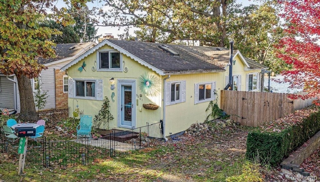 So much to love about this charming, lakefront home with spectacular frontage on Buckhorn Lake - watch the sunset every evening from your deck or inside through 2 large sliding door walls. Whether you are looking for a VRBO, "Pied-a'-terre home" or Short Term Rental or a single family residence or a summer home because you don't do SNOW, then this is your best shot for spending your Real Estate Dollars! Features include: Cathedral ceiling in living room with wall of windows looking out to the lake, 2 bedrooms, 1.5 baths, covered patio shades on deck, small street-side yard with perennials, attic for storage. Updates include: dishwasher, water softener, hot water heater, ceiling fans, doors and windows (Anderson), Trek style stairs & flagstone patio with built-in fire pit, privacy fence on either side of the house, flagstone walkway, dock and shed. Buckhorn Lake is a spring-fed and a no wake lake! It is great for swimming, fishing and boating - lots of wildlife to watch - Swans, Sandhill Cranes, Great Blue Herons. Located on dead end street. Enjoy the village of Holly - only 4 miles away - including the farmers' market. One-year home warranty included.
