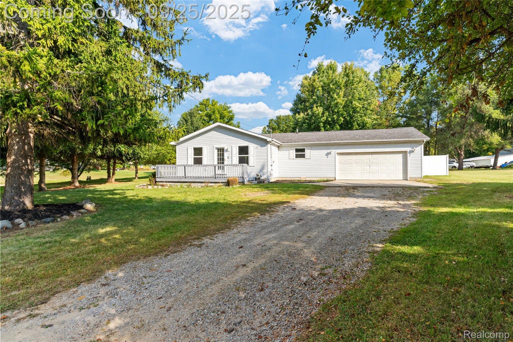 Be the first to see this charming 3 bedroom, 2 full bath ranch on a quiet side street in Clio! This home boasts a fenced backyard plus additional yard space to kick the football, perfect for your little Mustangs, or just enjoying the outdoors. The attached 2-car garage offers convenience, while the unfinished basement is ready for your finishing touches- pool table included! Inside, the home is freshly painted and meticulously maintained, offering a clean and welcoming atmosphere. The main floor features a functional layout with a spacious living room, kitchen, and breakfast nook. Appliances included: dishwasher, microwave, range/stove, refrigerator, and washer/ dryer. Enjoy peace of mind with central air, natural gas heat, and an existing well and septic system. Outside, a deck adds space for entertaining or relaxing. Open House Sunday 1–3PM. Don’t miss your chance at owning this move-in ready Clio gem!