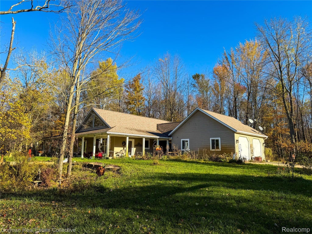 Sprawling split ranch on this beautiful property in Caro! This is a 3 bedroom, 2 full bath home, with an open floor plan and spectacular views of the property. Vaulted ceilings and large windows in the living room/kitchen/dining area creates an airy aesthetic, complimenting the outdoor area. Grand primary suite off of the living room, with its own walk out area, perfect for your morning coffee or your favorite book. The other two bedrooms are off of the kitchen, one with its own separate entrance for a mother-in-law space, or your home office. Great mud room off of the garage to hang your coats and spots for shoes, and another covered porch located off of it for yet another great space to relax outdoors. The home has an impressive cement exterior wall construction. Very solid! Pella windows and doors, just some of the many upgrades to this substantial home! Fantastic sized pole barn to store extra vehicles, four wheelers, boat, etc. The pole barn has a cement exterior construction as well! The large pond has been well cared for, and has a beach for warm weather activities! Did we mention the acreage? 18.67 acres of beautiful woods with groomed trails for riding, taking a nature walk, hunting, or whatever you desire is. This is an amazing property, and a must see in person! Call to schedule your showing today.