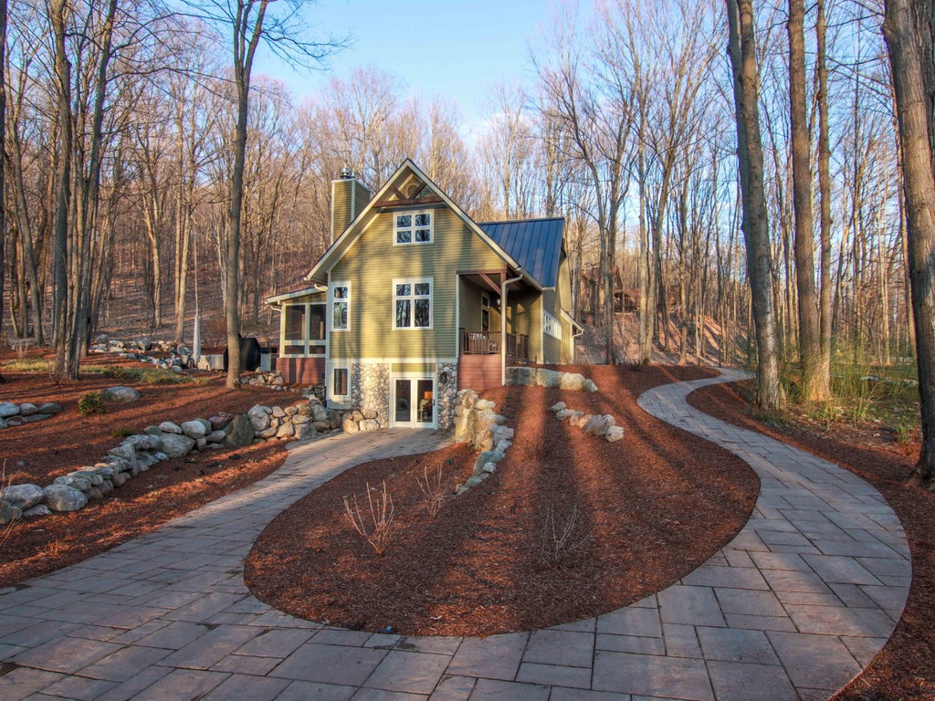 Peaceful and private, this entirely renovated home where no detail has been spared from flooring to ceiling treatments. Located in the Mountain Woods neighborhood, this 1.5-acre estate includes two lots. Step into a professionally landscaped and waterscaped yard; winding paver paths lead you to a multi-tiered stone hardscape with tranquil waterfalls cascading into a pond, and firepit gathering space. Extensive irrigation system waters the numerous perennials and mature beech & maple trees helping to create this serene setting. The 4-bedroom, 3.5-bath home features a welcoming great room with gas fireplace and custom mantle, cathedral ceiling adjacent to the spacious screened porch overlooking lush gardens.A new roof, complete with standing seam steel accents and forced air heat pump system are added bonuses to the freshly painted interior, hickory flooring and custom trim details. The kitchen features chef-inspired appliances, Cambria quartz countertops, custom cabinetry, and a live-edge breakfast bar. Enjoy main floor living with the large master suite, glass-enclosed shower and gorgeous copper Japanese soaking tub, two sinks and Cambria countertops. The main-floor laundry includes a custom locker and bench, perfect for ski and golf gear. One of the three bedrooms upstairs also functions as a combination kids bunk room and family theatre room, while a large bath easily accommodates your family or guests. On the lower level; an office/den, full bathroom, tongue & groove pine-finished family room with built-in shelving, built-in safe, local artisan custom-carved mantle and stone surround gas fireplace, walk-out and more outstanding garden views. Insulated and heated 2?? car garage and recently expanded asphalt driveway was designed to accommodate a temporary pickle ball court! Crystal Mountain FOUR SEASONS CLUB membership options available.