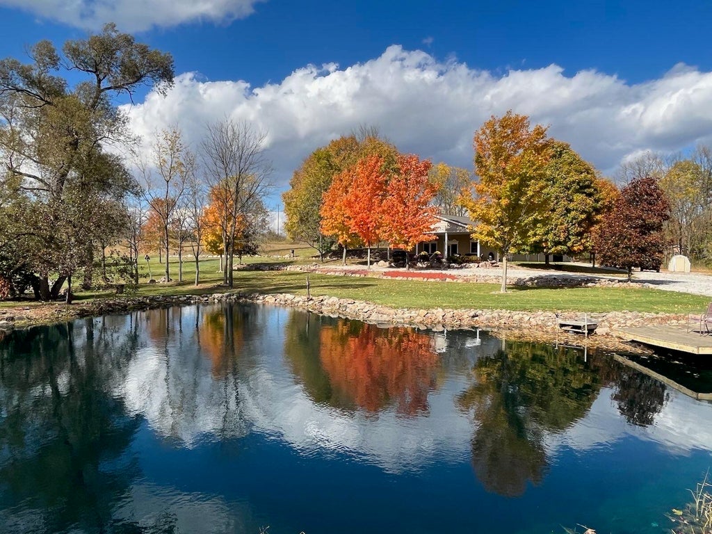 A Scenic 60 acre Masterpiece! The winding drive leads you past the pond with a sandy beach & up to the main house & guest house. Just into the woods is a small hunting cabin & there are trails throughout along with several elevated blinds. The property is rolling & wooded, with ravines & mature trees. The main house was built in 2004 & offers 2 bedrooms & a full bath, attached barn/garage & generator. The guest house could be two bedrooms, with a full bathroom & its own laundry hookup, as well as a deck overlooking the grounds, attached garage & its own generator. Some furniture is negotiable & the property can be split. Great property for two families or mother in law. The pond is stocked for fishing & has a sandy beach for swimming. Three wells. PERFECT HUNTING CAMP! Great location.