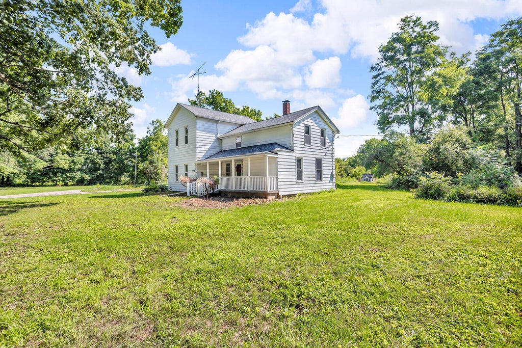 COUNTRY LIVING AT ITS' BEST! Charming Farmhouse on 5 Acres in Highly Desirable Western School District! This spacious 5-bedroom home offers a perfect blend of country charm & modern updates. Step inside to discover a large country kitchen with attached walk-in pantry, window sink & updates of rich cabinets. The main floor features 2 convenient bedrooms & full bath, perfect for guests or multi-generational living. A double staircase adds classic farmhouse character while leading to 3 additional bedrooms upstairs. Enjoy peaceful mornings & relaxing evenings on the expansive screened porch. Impressive upgrades include newer roof, furnace, 200AMP electrical panel, whole-house automatic generator for peace of mind, metal roof/sided garage w/walk-up 2nd floor. Tons of storage. Circle drive.