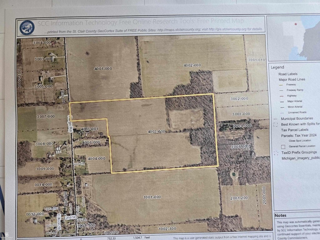 Located on a paved rd. This large parcel of land is a rare find. A mixture of Tillable farmland And some mature hardwoods, Logging may be an option. This property could appeal to farming or a recreational enthusiast. Many large bucks taken off the back of property. DTE has underground easement that could provide large amount of income if it is executed. Great potential even for a building site. Options abound with this property.