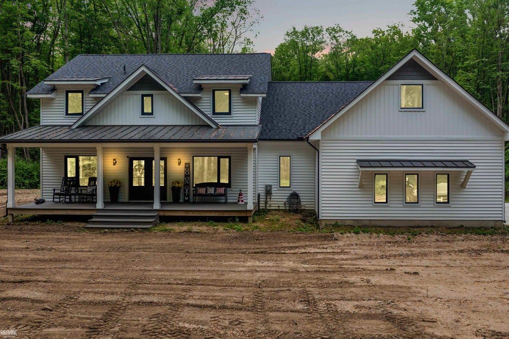 Stunning Newly *Custom Built Modern Farm House designed on 11+ peaceful wooded country acres with *City Water/*City Sewer & on a *Paved Road! This one of a kind home features a 2,675+sqft floor plan equipped with 3 Bedrooms,Den or 4th bedroom, 2 full baths & 1 half bath including a True Primary Bedroom Suite on the main floor with a beautiful full tiled bath & Incredible custom walk in closets. Upon entry you will notice the attention to detail and large open functionality this home possesses. Great room/dinning/kitchen areas flow openly together all offering wonderful views of nature.This Gorgeous Custom Kitchen features granite tops,tiled backsplash,built in appliances, Coffee station area & large walk in pantry! Outside you will find a large covered Porch great for entertaining family&friends while watching the wild life right in your backyard! Plus enjoy the loft media room with Stunning Balcony! An additional HUGE unfinished bonus area,owners call their basement & the attached 2.5+ car garage offers lots & lots of storage space!