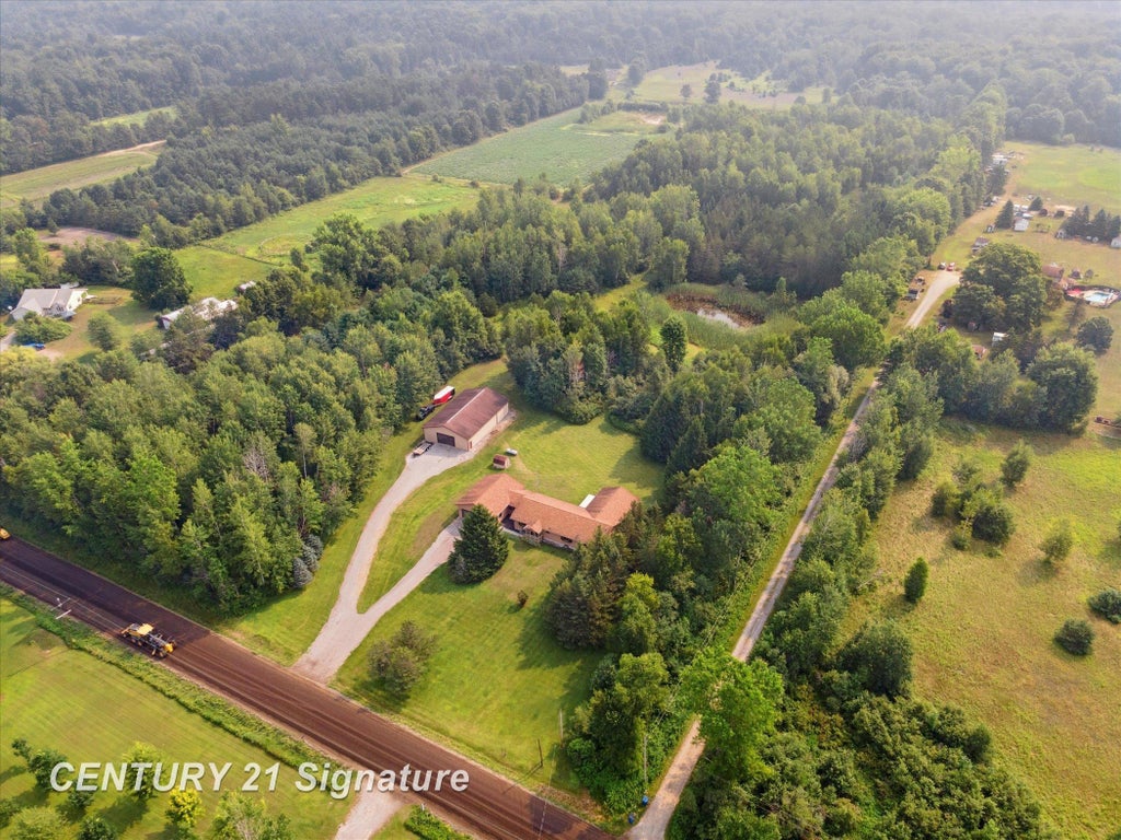 Noteworthy on Nine Mile! This Stick built 2280 sq feet of Phenomenal floorplan in this beauty which includes not 1, but 2 Master suites, one with an enormous walk in closet and an extraordinary, serene and expansive Master bathroom including a jet tub and beautifully tiled walk in shower just like your own spa. There is also another large bedroom and an office or could be a 4th bedroom if you add a closet! 3 Full bathrooms, A lovely and substantial kitchen with granite counters, pantry and a nice sized dining area. There is also a Living room with a pellet stove that can heat the entire house pretty well leaving the master a bit cooler for restful sleeping. The spacious Family room looks out over the deck at the vast back yard and the remainder of the 35.53 acres with approximately 8 foot deep pond and immense woods in the background. The Nice big mudroom/entryway leading from the attached 2.5 car with 8 foot tall doors and a 3rd door off the back is a added delight and the full unfinished basement is ready for you to finish and add extra living space! Plus the 40x64 Pole barn with it's own separate driveway, 220, 100amp electrical service, 12 foot tall walls and 10 foot high door. The extra cabinet for over the oven/range is in the garage so it could easily be restored to it's original spot and you could lower the microwave if desired. The flooring in the kitchen, living room, dining room and family room is solid laminate bamboo that can be refinished. Don't forget the magnificent hunting you could have in your own backyard as you can see from the photos. There is a culvert in the back of the property for the kids to catch crawdads and certainly enough room to grow your own vegetables if desired.