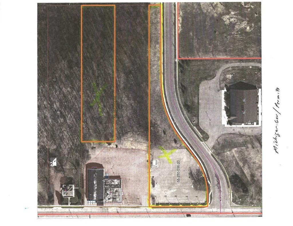 Two commercial lots for sale, along with a liquor license! The front lot with all of the road frontage has a paved parking lot, power, and light poles already. This is the lot with the liquor license (including Sunday sales) and PUD zoning, giving it open opportunity for a convenience store, restaurant, etc. The second lot is zoned R-2, and would be a great spot for mini-storage or possibly some rental units in the future. There is an easement to this property on the north side of the old auto shop. The auto shop property in the middle is also available for purchase to tie everything together, and have ample space for bigger dreams. Conveniently located off of M-37 for amazing exposure. Call for more info.