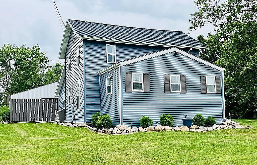 Fully renovated 4-bedroom farmhouse combining charm and modern upgrades on a .41-acre lot in a peaceful rural setting near town. The 1,500 sq ft home features a new kitchen (2025) with updated cabinets, countertops, sink, and appliances. Fresh paint, new flooring, upgraded lighting, and renovated bath (2023) enhance comfort. Major updates include HVAC, A/C, siding, windows, roof, water systems, and generator hook-up. A spacious 30x40 insulated garage offers room for 3-4 vehicles, a workbench, cabinetry, and 220V outlet. Outdoor deck with hot tub provides space to relax. Landscaped, mowed, and professionally surveyed. A rare move-in-ready home with thoughtful upgrades throughout.