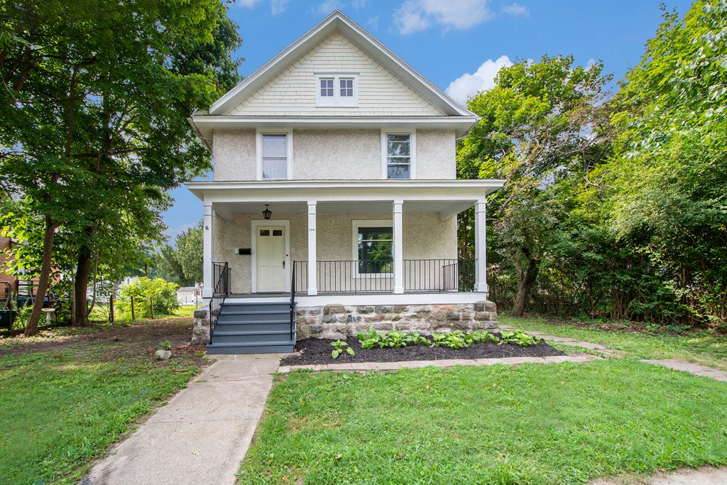 Welcome to this renovated home that blends timeless charm with modern updates! The main level has a generous living room featuring bay windows and classic pocket doors, offering both character and functionality. The main floor also includes a huge front porch, a formal dining room, a cozy den with floor-to-ceiling bookshelves, a full bath, and a large kitchen (new stove coming soon) with views of the backyard. Upstairs, you'll find 4 large bedrooms, another full bath, a large flex room,and a walk-up attic with great potential for storage or a bonus room. The access to the barn/two-stall garage is off the alleyway behind the house. Updates include fresh paint & flooring, new electric, furnace & water heater, & newer roof. Move in Ready!