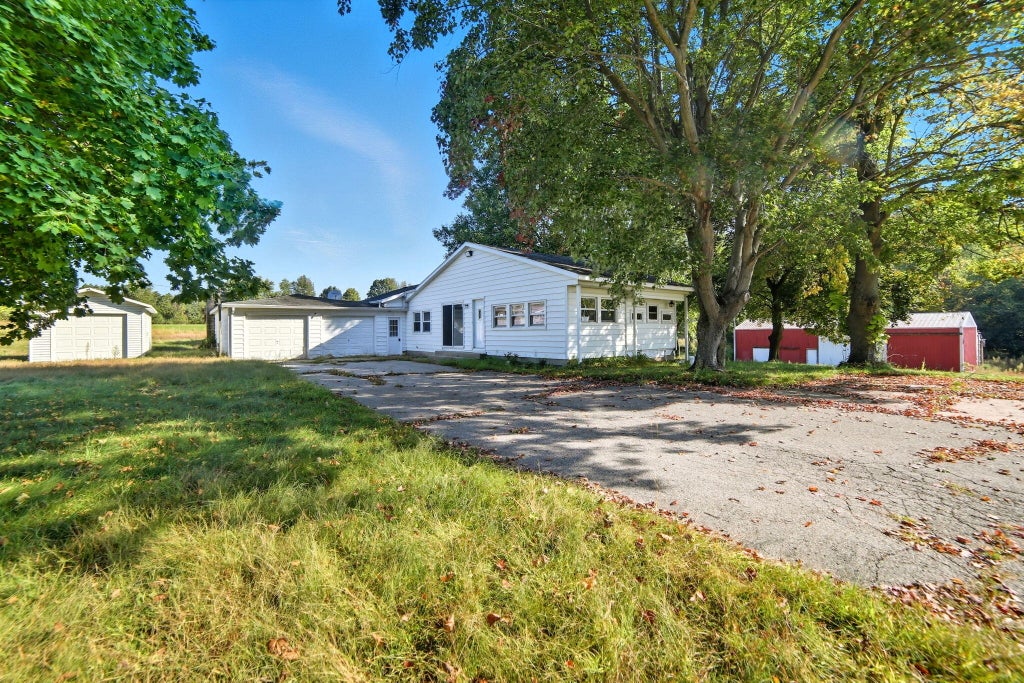 Tucked away on 4.44 beautiful acres in Carlton Township, this one-of-a-kind property offers peaceful country living with serious workspace potential. The 3-bed, 1.5-bath home includes a spacious living room addition, breezeway, and attached 2-stall garage, all on a full basement. You'll love the wide-open views and smart layout. Outbuildings include a 64x26 insulated pole barn with electric, water, and concrete floor; a 27x40 pole barn with electric and concrete floor; plus a second detached garage--perfect for a home business, hobby shop, or extra storage. Located on a paved road just minutes from Hastings and M-43, this is the rural opportunity you've been waiting for. Call for a private tour.