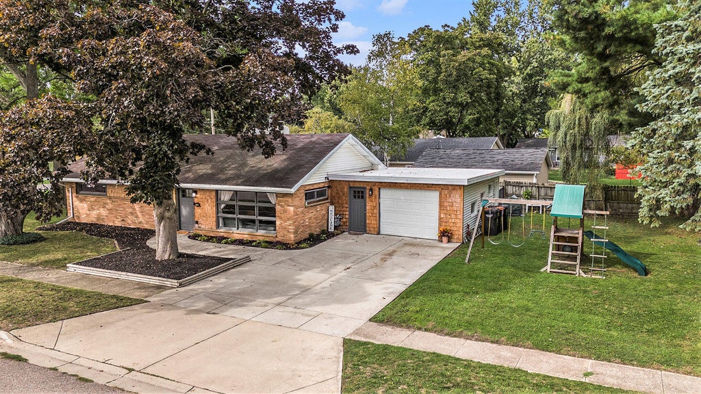 Offering a seamless blend of classic appeal and thoughtful improvements, this well-maintained 3-bedroom, 1-bath ranch is situated on a corner lot near downtown Cedar Springs. The recently updated kitchen features generous cabinetry and a floor-to-ceiling pantry, complemented by a full bathroom with a sleek double vanity. The spacious living room is filled with natural light and enhanced by a welcoming fireplace, creating a refined yet comfortable atmosphere. Additional features include a smart thermostat, a newer furnace, an attached garage with ample storage or workspace, and a private backyard framed by mature trees and a patio area. A charming home that's ready to welcome your next chapter with warmth and style.