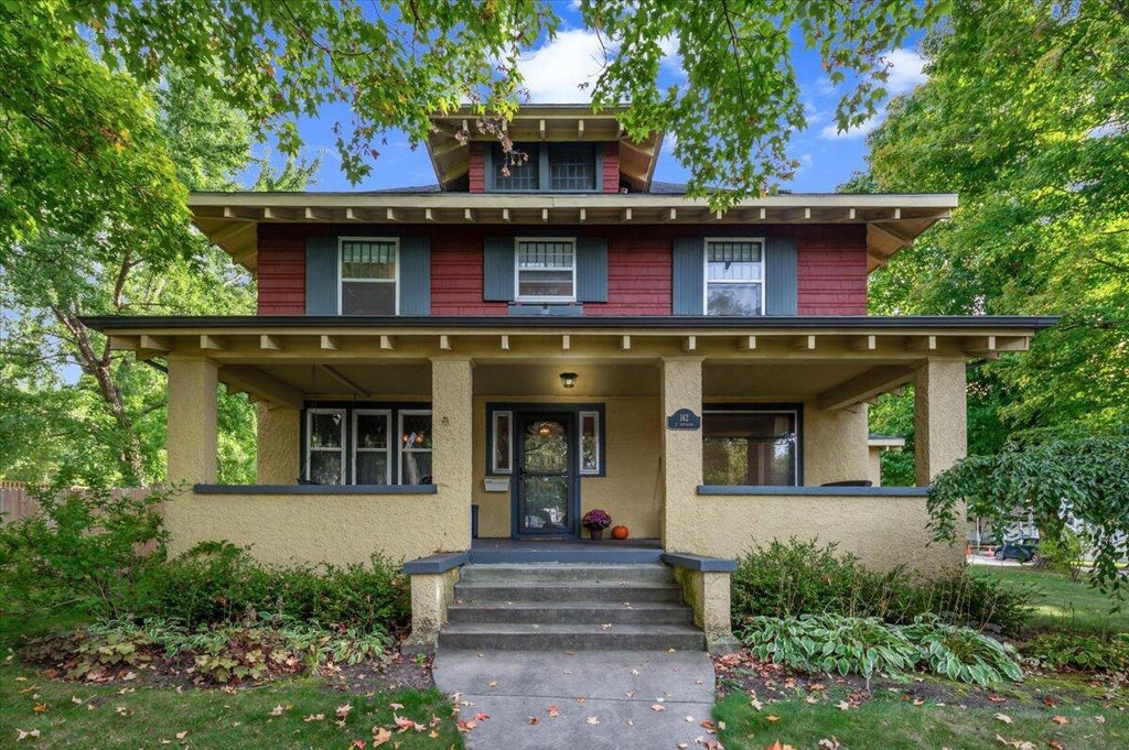 This thoughtfully maintained 4-bedroom, 2-bath home offers an inviting blend of historic character and modern upgrades in a sought-after Rockford location. Classic details like original woodwork, coffered ceilings, and built-ins are complemented by a refreshed kitchen featuring quartz countertops and stainless steel appliances, along with new flooring and custom window treatments throughout. Recent improvements include an updated electrical panel and a high-efficiency mini split A/C system, enhancing both comfort and efficiency. Enjoy the light-filled sun porch, generous living spaces, and timeless architectural charm. Situated on a landscaped corner lot, the property includes a detached 2-stall garage, a new cedar privacy fence, and easy access to nearby parks, trails, shops, and dining. A rare opportunity that combines classic style with modern convenience.