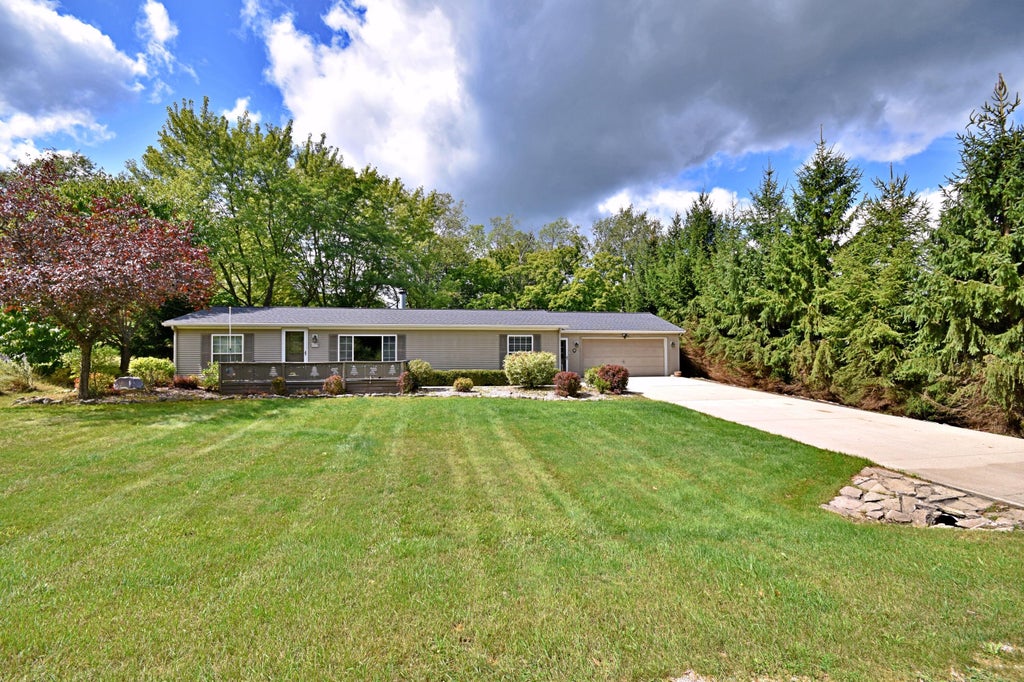 Rare find in Caberfae Subdivision! This beautiful 3-bedroom, 2-bath ranch-style mobile home features an attached 2-car garage and desirable single-level living--all within walking distance to the slopes and golf course. Situated on a large lot, the property offers a welcoming front porch, a back patio for entertaining, and a shed for extra storage. Inside, the split floor plan places the primary suite with private bath on one side, and two additional bedrooms and bath on the other. Highlights include a stunning stone gas fireplace, central air, and a sprinkler system. Located in a fantastic recreational area with snowmobile trails, hunting, lakes, and rivers nearby. Priced to sell quickly--don't miss this opportunity! Buyer/Buyer's agent to verify all information.