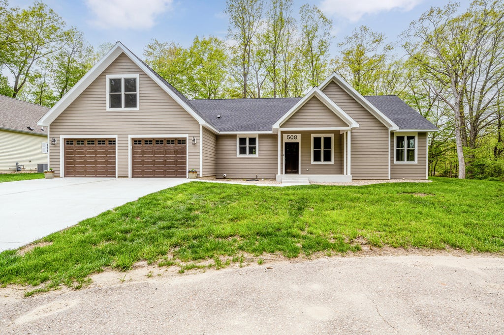 Newly available in the City of New Buffalo! An abundance of natural light fills this custom-built home on a quiet cul-de-sac.All of the features: quartz countertops, pendant lighting, stainless appliances, farm sink, snack counter, open concept layout; 4-5 bedrooms, 3 full bathrooms, main-level laundry, EV Charger in two-car attached garage; a beautiful screened in porch and more.Primary bedroom features an amazing bathroom with wet room that has to be seen to be believed and oversized walk-in closet.Spacious bonus room (with full bath) above garage can be used as a 5th bedroom or flex space.Beautiful pond out back door offers serene views and visits from local wildlife.Vacant lot next door is included.No STR license.Listing agent related to Seller