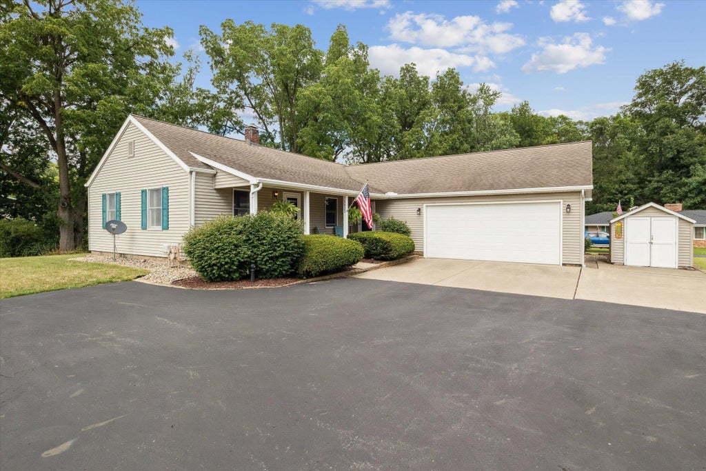 Located just outside of the St. Joseph city limits is where you will find this gem that you can call home. Pride of ownership shows in this home that has been in the same family for generations. The home was built in 1938 with a solid foundation and was remodeled and added on circa 1995-1997. Home has a spacious primary bedroom with a private half bath and the second bedroom is a comfortable size as well. The 25 x 23 SF family room is where you will be spending most of your time. The sliding glass door opens to the deck that overlooks your ravine views. The oversized 2 car attached garage is in exceptional condition with cabinets and benches in place for you. The 11 x 16 dining room offers enough space for a large table when entertaining your family and friends for special events. Off of the dining room is an additional room that can be utilized as an office, den, sitting room or even turned into a third bedroom. The property boarders the ravine to the north for extra privacy. Youwill cherish your mornings sipping coffee out on the delightful front porch. There are 2 sheds included in the sale. New heat exchanger in 2024, new AC in 2025, new refrigerator and dryer in 2023. Built in antenna in attic and rotator in garage that will stay with the home. Enjoy the best of country living yet you are only a 4-mile drive to downtown beaches, restaurants, shopping and all of the annual activities. A short stroll in the other direction leads you to wineries and the great Southwest Michigan fruit belt.