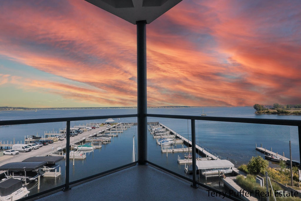 Waterfront. Fully Equipped. Irresistible. High Rise. Perched high in Balcom's Cove, this 4th-floor, condo delivers the kind of panoramic lake views you usually only dream about. With 2 bedrooms, 2 baths, and nearly 1,500 sq ft of sun-drenched living, its modern elegance meets effortless lake-life. Endless water views set the stage for golden sunsets and morning coffee on your private balcony. You'll find yourself enjoying modern updates all throughout ensuring convenience and comfort. Top it off with a deeded boat slip, 2 parking spaces (an attached garage + carport), and comes FULLY FURNISHED. Step outside and you're minutes from beaches, the country club, and Muskegon's best dining. Step inside and it's your private retreat where every day feels like vacation. This isn't just a condo. It's your front-row seat to Muskegon Lake.