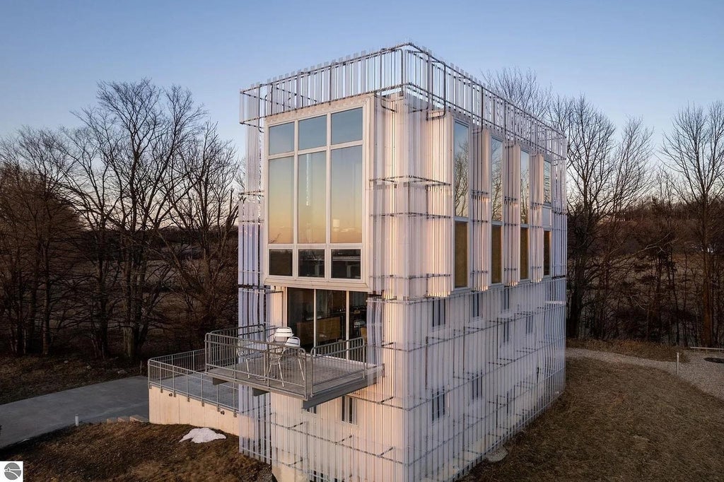 MODERN GEM in Leelanau County. Designed by renowned San Francisco architect Anderson Anderson, this house is imagination come to life - the landscape and sky is captured and reflected in the siding changing the color throughout a day. The delight continues inside with a captivating floor plan; first floor, nice views of Lake Michigan, second floor, oh look - you can see The Lake all the way to the Whaleback, third floor - OMG you can see The Lake all the way to Pyramid Point! Fourth floor - I friggin' think that's Wisconsin!! And the nooks and crannies in between each level, ooh la la. Imagine living in a house that amazes you every day. Beach, restaurants less than a mile away.