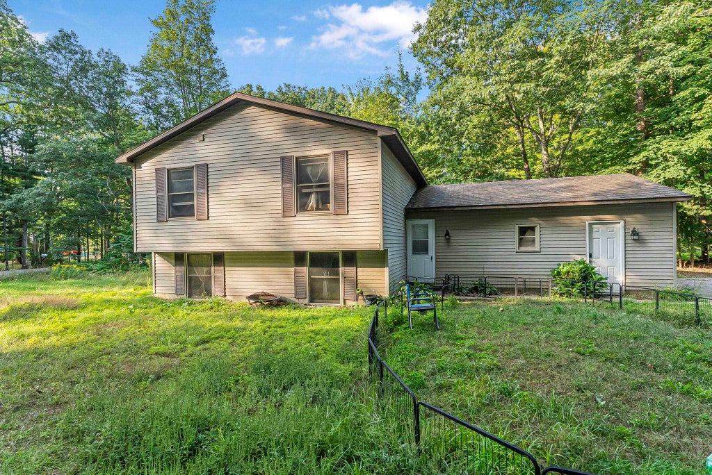 Rare 4-bedroom home in a wooded subdivision with shared frontage on Cedar Hedge Lake! Seasonal lake views add to the charm of this well-situated corner lot property. The split-level floorplan features an attached garage and open living area along with a a lower-level rec room that is already drywalled-just add the included suspended ceiling tiles and your own flooring to complete the space. Plumbing is in place for a second bath, offering easy expansion. Garage is equipped with 220 50 amp dedicated circuit to charge an electric vehicle. With limited 4-bedroom options in this area, plus lake access, this home is a fantastic opportunity to enjoy Northern Michigan living.