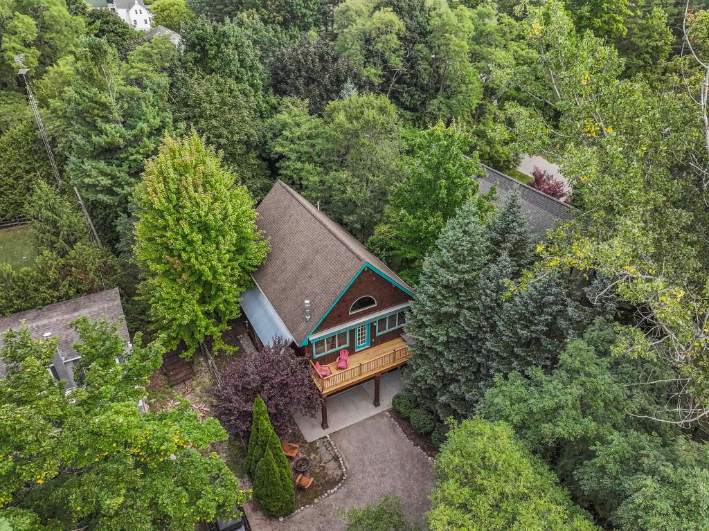 Enjoy living in downtown Leland! This inviting bi-level home offers a fantastic low-maintenance option for a seasonal lifestyle, while delivering full functionality and the comfort needed for year-round residency in Northern Michigan. Tucked away off the main road and accessed via a quiet alley, this home is nestled within a shady, wooded setting. Entirely above grade, this home has the feel of an elevated treehouse with beautiful greenery visible through every window and door. Cherry kitchen cabinets, painted wood flooring, pine tongue and groove finishes, and an earthy color palette add warmth and rustic charm to the interior. Upstairs, the main living area features an open-concept layout under vaulted ceilings with an arched, clerestory window. The kitchen, dining area, and living room flow seamlessly together, opening onto a sunny, south-facing deck with a retractable awning-perfect for outdoor entertaining, evening cocktails, or morning coffee. Also on the upper level is the spacious primary bedroom, complete with a walk-in closet and access to a shared full bathroom. This primary bedroom enjoys soft northern light and overlooks the private backyard. The lower level offers three additional bedrooms, two bathrooms, and a laundry room, all connected by a central hallway with ample storage. Two of the three bedrooms on this level open onto outdoor patios, and the laundry room includes an exterior entrance with a pet door - use this as your mudroom! - an ideal entry after sandy beach days or snowy adventures. Other features include a freestanding natural gas stove in the living room, radiant heat on the main floor, plus forced air and AC throughout. Whether you're looking for a full-time residence or a short-term rental, this home has broad appeal. Just a few blocks from access to North Lake Leelanau and the heart of Lelands shops, restaurants, and attractions, this is a chance to establish your foothold in town, finally!