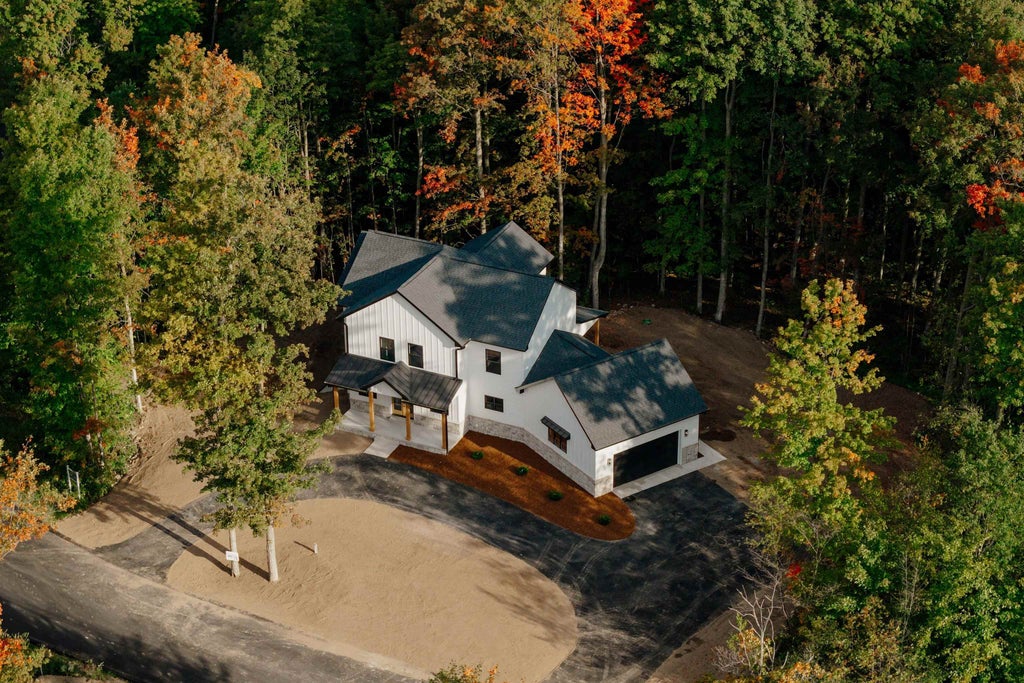 Brand-new construction in the desirable Bahia Vista community! This thoughtfully designed 3-bedroom, 2.5-bath home offers over 2,300 sq ft of modern living space on a wooded .81-acre corner lot. The open floor plan features a spacious great room with vaulted ceilings and a cozy gas fireplace, a chefs kitchen with island and pantry, and a main floor den/office. High-end finishes include KitchenAid appliances, white oak cabinetry throughout, beamed ceilings, and Whirlpool washer/dryer. Energy-efficient windows, on-demand water heater, and Energy Star appliances ensure long-term comfort and efficiency. Exterior highlights include a covered front porch, blacktop driveway, attached finished garage, and a full irrigation system. Bahia Vista residents enjoy community trails, common areas, and snow removal included. Conveniently located just minutes from downtown Traverse City, this home combines new construction peace of mind with the beauty of Leelanau County living.